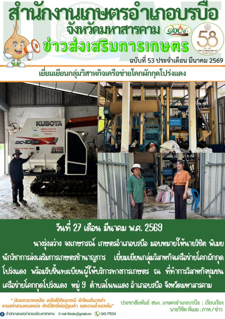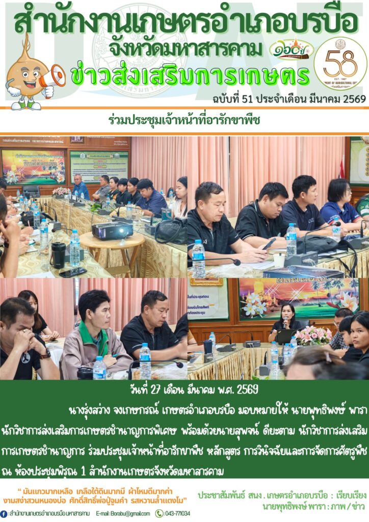 image-2-1536x491สำนักงานลดใช้พลังงาน145329 ข่าวส่งเสริมการเกษตรข่าวเตือนภัยศัตรูพืชข่าวการจัดซื้อจัดจ้างข่าวประชาสัมพันธ์ทั่วไป ข่าวส่งเสริมการเกษตร 17 ธันวาคม 2025 ไม่มีความเห็น ประจำเดือน มีนาคม 2569 Read More ข่าวเตือนภัยการระบาดศัตรูพืช 18 ธันวาคม 2025 ไม่มีความเห็น ประจำเดือน ธันวาคม 2568 Read More ข่าวการจัดซื้อจัดจ้าง 19 ธันวาคม 2025 ไม่มีความเห็น Read More ข่าวประชาสัมพันธ์ 19 ธันวาคม 2025 ไม่มีความเห็น Read More สำนักงานเกษตรอำเภอบรบือ จังหวัดมหาสารคาม 1 week 3 days ago สำนักงานเกษตรอำเภอบรบือ จังหวัดมหาสารคาม 2 weeks 2 days ago 📌สรุปข่าวกรมส่งเสริมการเกษตร 📌 ⏰📂ประจำวันที่ 16 มีนาคม 2569📂⏰ . อ่านต่อในคอมเมนต์ #สรุปข่าวส่งเสริมการเกษตร #กรมส่งเสริมการเกษตร #doaenews สำนักงานเกษตรอำเภอบรบือ จังหวัดมหาสารคาม 3 weeks 18 hours ago 📌สรุปข่าวกรมส่งเสริมการเกษตร 📌 ⏰📂ประจำวันที่ 11 มีนาคม 2569📂⏰ . อ่านต่อในคอมเมนต์ #สรุปข่าวส่งเสริมการเกษตร #กรมส่งเสริมการเกษตร #doaenews