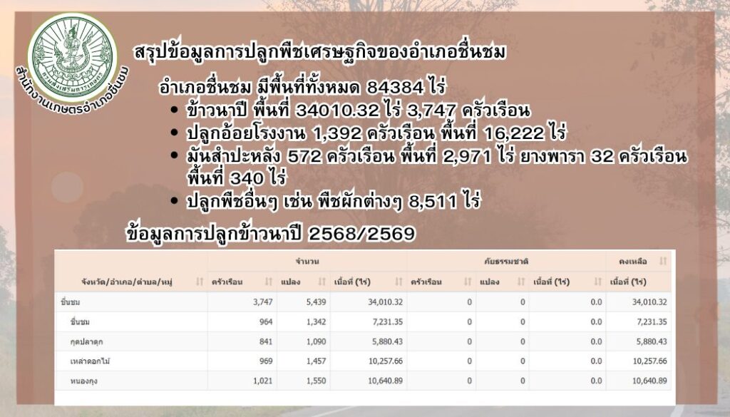 เกี่ยวกับหน่วยงาน อำนาจหน้าที่ ภารกิจ วิสัยทัศน์ พันธกิจ ข้อมูลพืชเศรฐกิจของอำเภอชื่นชม/ข้อมูลการปลูกข้าวนาปี