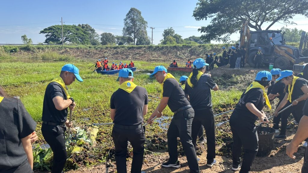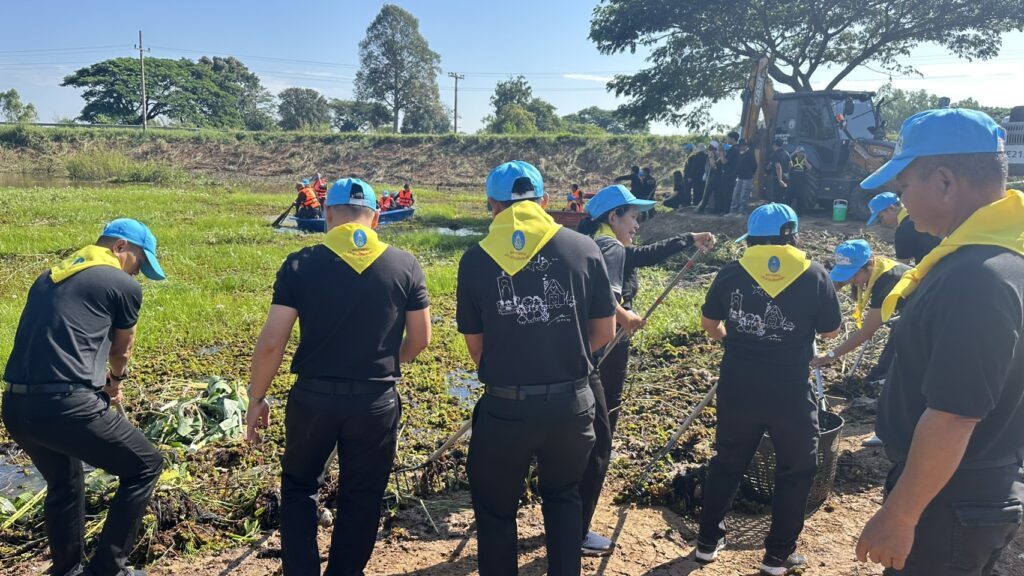 นายสมพร นามพิลา เกษตรจังหวัดมหาสารคาม มอบหมายให้นายเกรียงไกร ทองสาร หัวหน้ากลุ่มส่งเสริมและพัฒนาเกษตรกร พร้อมด้วยเจ้าหน้าที่ ร่วมกิจกรรมตามโครงการจิตอาสาพระราชทาน จังหวัดมหาสารคาม ประจำเดือนพฤศจิกายน 2568 กิจกรรมจิตอาสา “เราทำความดีเพื่อ ชาติ ศาสน์ กษัตริย์” กิจกรรมกำจัดผักตบชวา ณ บ้านโขงกุดเวียง หมู่ที่ 14 ตำบลขามเรียง อำเภอกันทรวิชัย จังหวัดมหาสารคาม