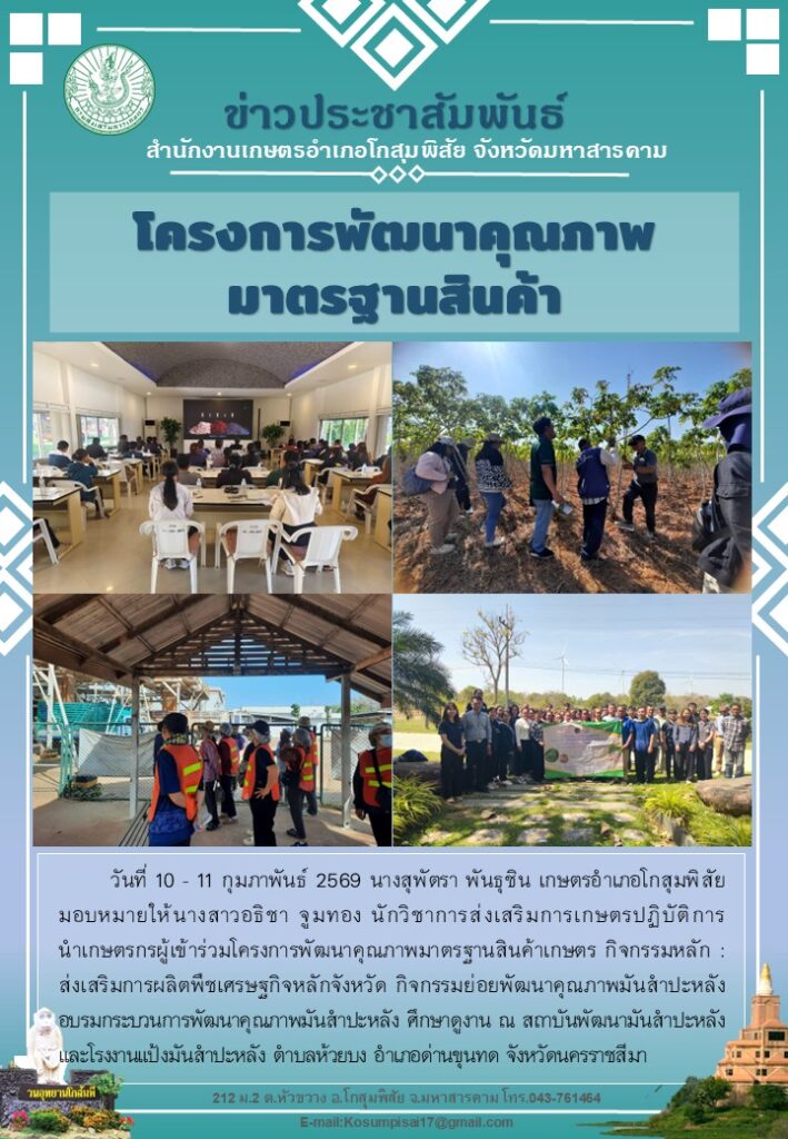 น.ส.อธิชา (เกษตรพิว) นำเกษตรกรอำเภอโกสุมพิสัย ศึกษาดูงาน ณ จังหวัดนครราชสีมาBy kosumphisai_admin / 13 กุมภาพันธ์ 2026
