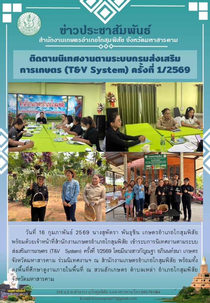 นางสาวกัญณฐา เกษตรจังหวัดมหาสารคาม ลงพื้นที่นิเทศงานร่วมกับ จนท. เกษตรอำเภอโกสุมพิสัยBy kosumphisai_admin / 16 กุมภาพันธ์ 2026