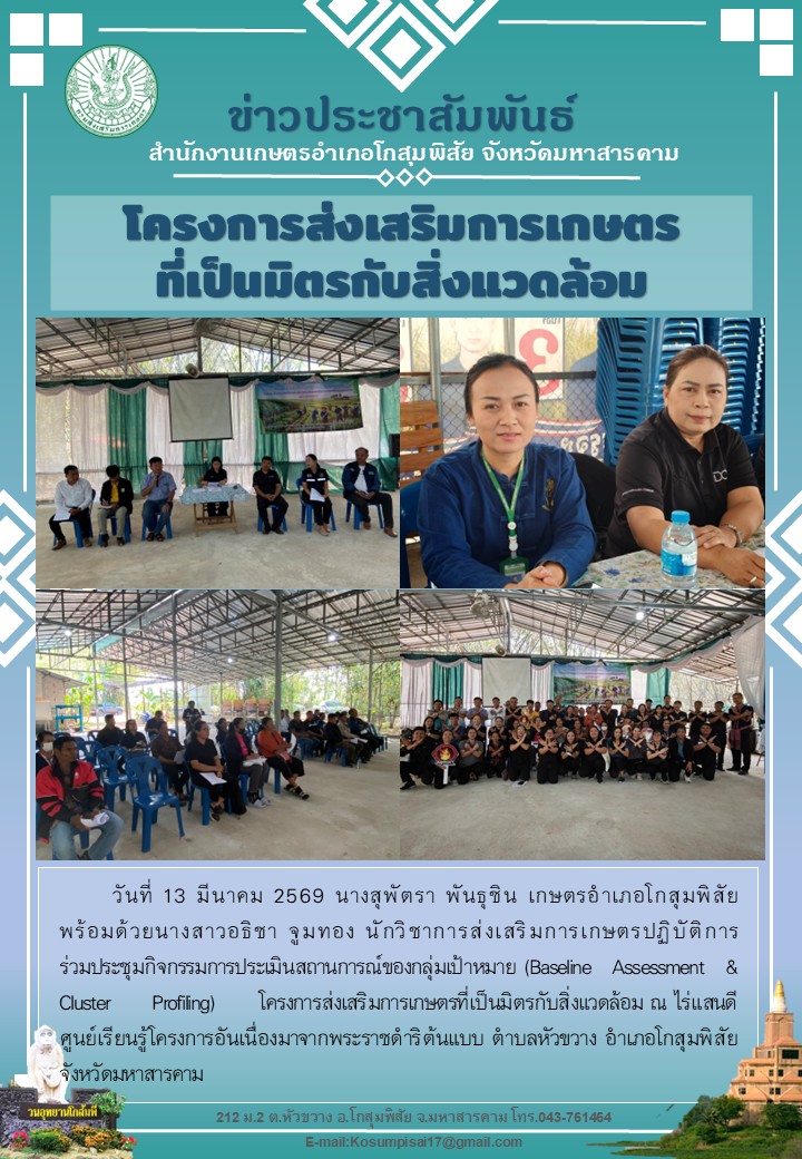 นางสุพัตรา พันธุชิน เกษตรอำเภอโกสุมพิสัย พร้อมด้วย น.ส. อธิชา จุมทอง ร่วมประชุม Baseline Assessment & Cluster Profiling ปี 2569By kosumphisai_admin / 13 มีนาคม 2026