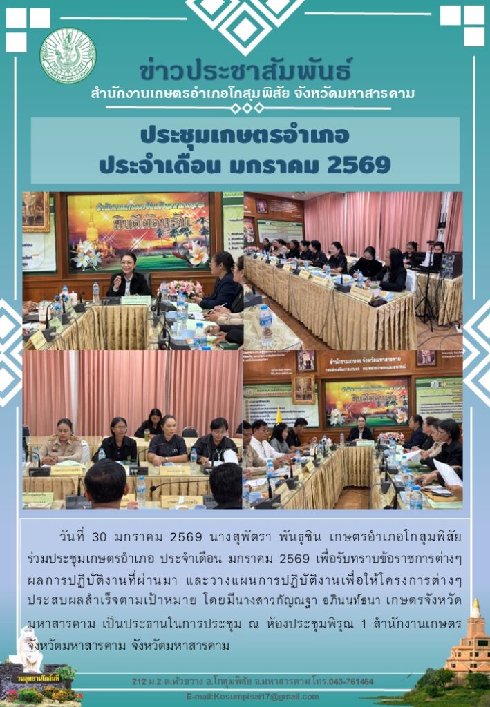 “สุพัตรา พันธุชิน” เกษตรอำเภอ ร่วมประชุมเกษตรอำเภอ ประจำเดือน มกราคม 2569