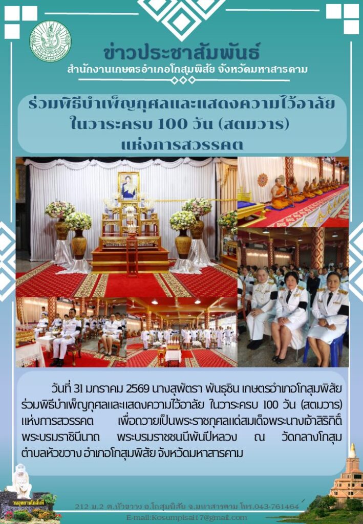 สุพัตรา พันธุชิน กษอ.โกสุมพิสัย ร่วมพิธีบำเพ็ญกุศลและแสดงความไว้อาลัย สมเด็จพระนางเจ้าสิริกิติ์ พระบรมราชินีนาถ พระบรมราชชนนีพันปีหลวง