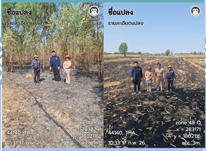 กษอ.โกสุมพิสัย ลงพื้นที่ตรวจสอบจุดความร้อนจากการเผาในพื้นที่เกษตร