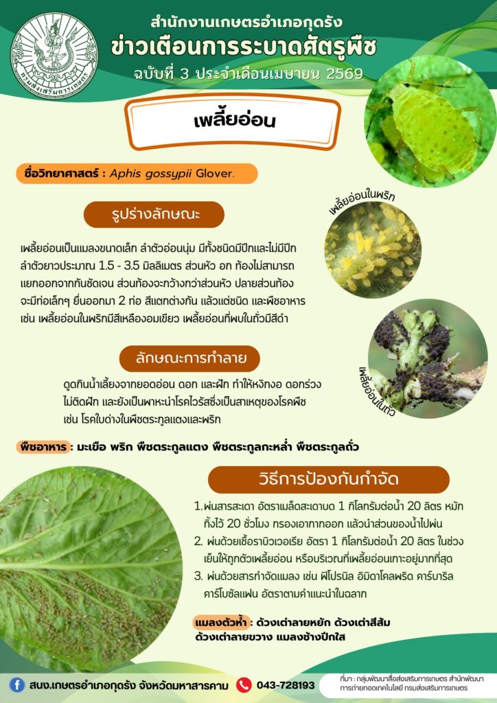 ข่าวเตือนการระบาดศัตรูพืช “ประจำเดือนเมษายน 2569”