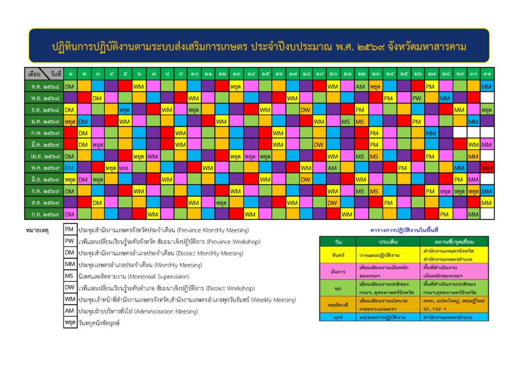 ***ปฏิทินการปฏิบัติงานตามระบบส่งเสริมการเกษตร