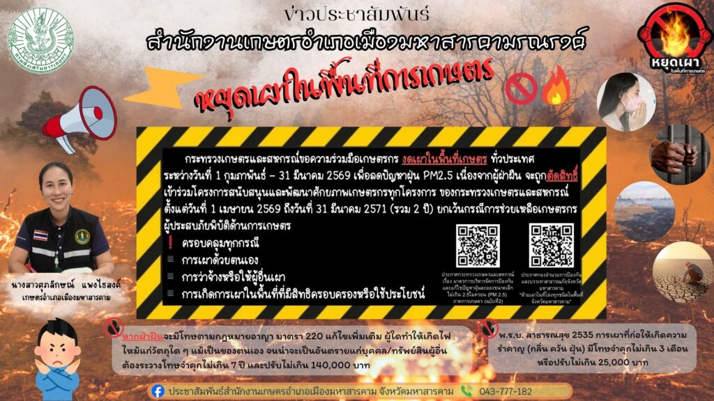 สำนักงานเกษตรอำเภอเมืองมหาสารคาม ประชาสัมพันธ์รณรงค์ “หยุดเผาในพื้นที่การเกษตร”
