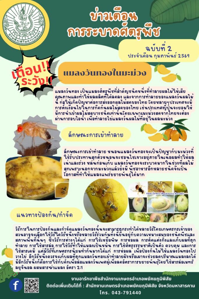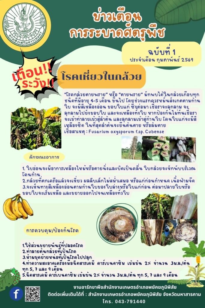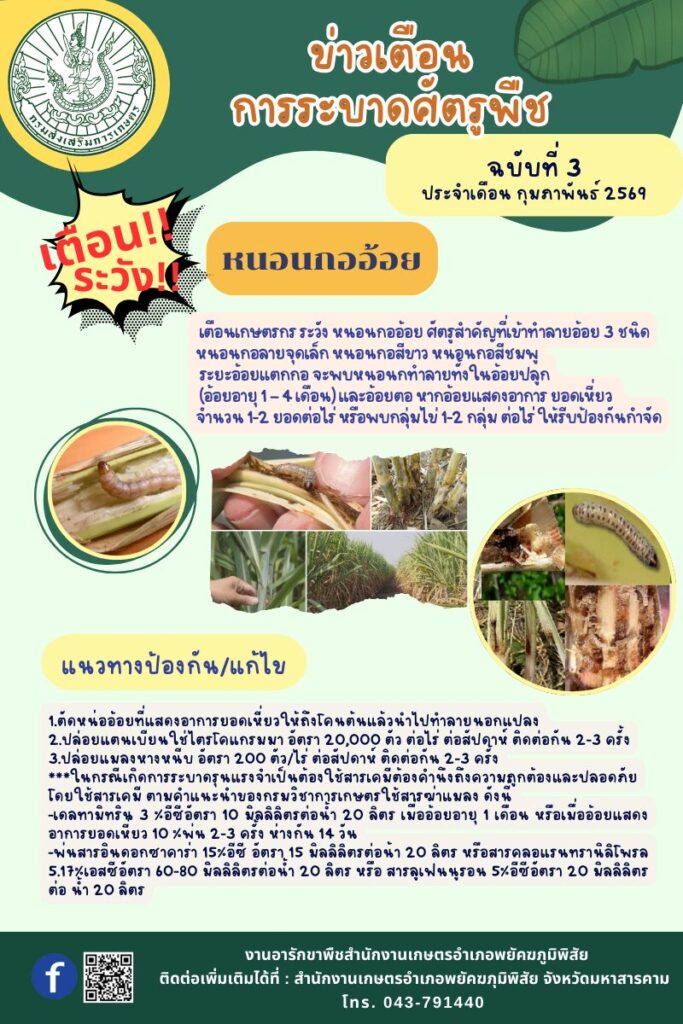 วันที่ 9 มีนาคม 2569 นางสาวมุกดารัศมิ์ สุวรรณพันธ์ นักวิชาการส่งเสริมการเกษตรชำนาญการ รักษาราชการแทน เกษตรอำเภอพยัคฆภูมิพิสัย