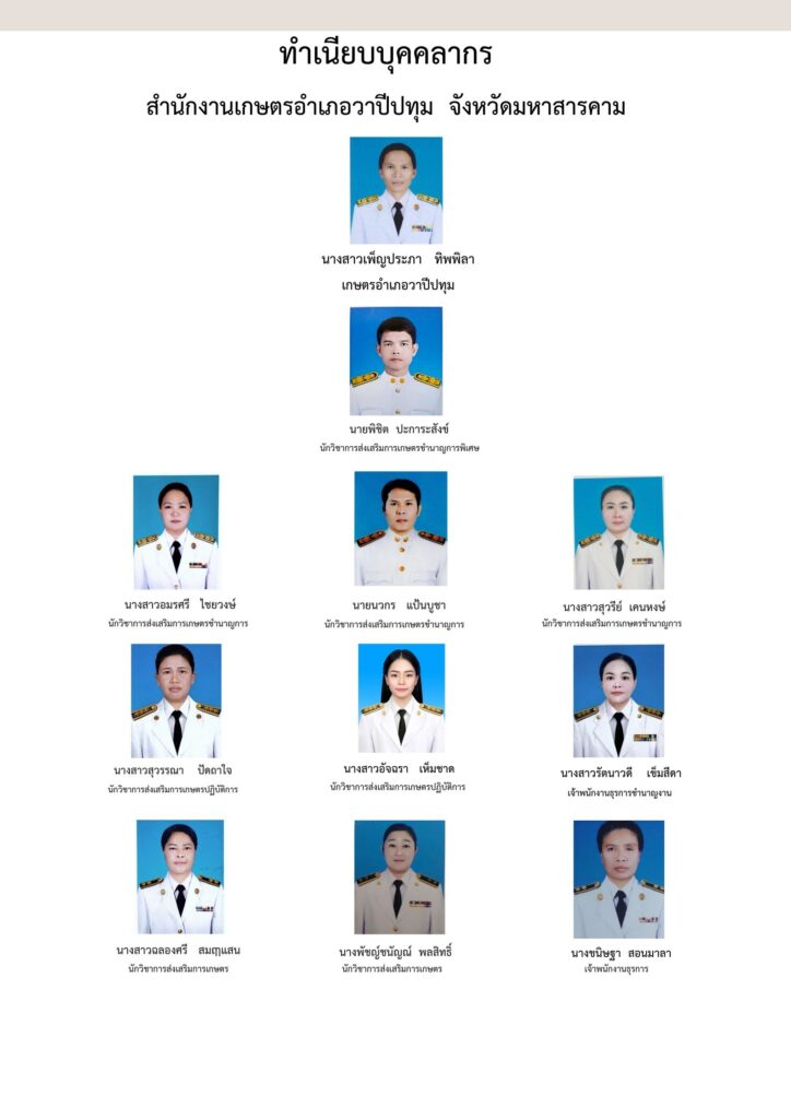 บุคลากร สำนักงานเกษตรอำเภอวาปีปทุม จังหวัดมหาสารคาม Call To ActionClick here to change this text. Lorem ipsum dolor sit amet, consectetur adipiscing elit. Ut elit tellus, luctus nec ullamcorper mattis, pulvinar dapibus leo.Read More
