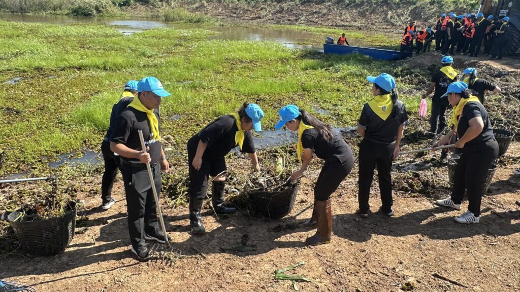 นายสมพร นามพิลา เกษตรจังหวัดมหาสารคาม มอบหมายให้นายเกรียงไกร ทองสาร หัวหน้ากลุ่มส่งเสริมและพัฒนาเกษตรกร พร้อมด้วยเจ้าหน้าที่ ร่วมกิจกรรมตามโครงการจิตอาสาพระราชทาน จังหวัดมหาสารคาม ประจำเดือนพฤศจิกายน 2568 กิจกรรมจิตอาสา “เราทำความดีเพื่อ ชาติ ศาสน์ กษัตริย์” กิจกรรมกำจัดผักตบชวา ณ บ้านโขงกุดเวียง หมู่ที่ 14 ตำบลขามเรียง อำเภอกันทรวิชัย จังหวัดมหาสารคาม