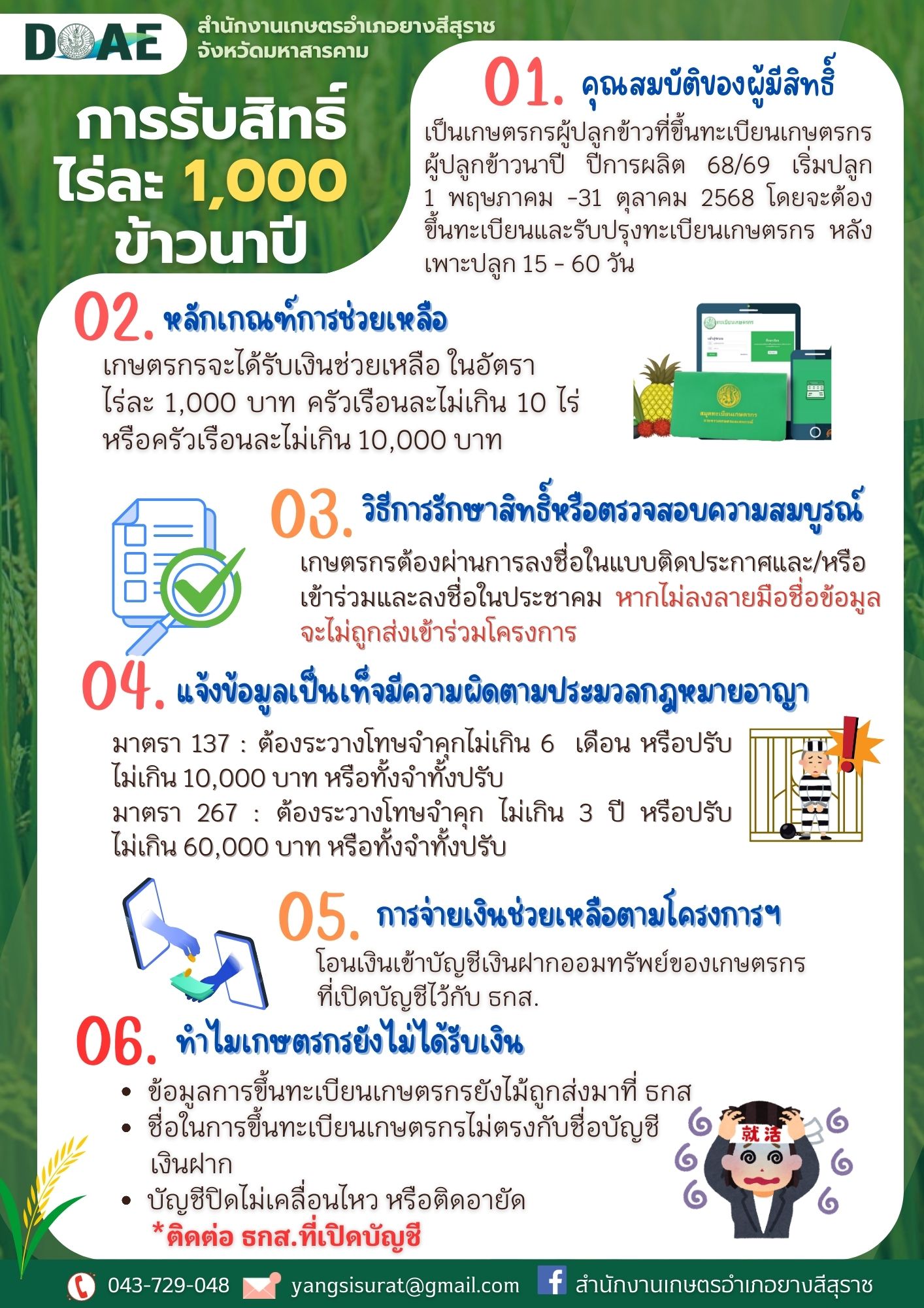 แนะแนวเรื่อง “6 ความคืบหน้า โครงการสนับสนุนช่วยเหลือเกษตรกรผู้ปลูกข้าวนาปี และส่งเสริมการเพาะปลูกให้เหมาะสมกับศักยภาพพื้นที่ ปีการผลิต 2568/69”