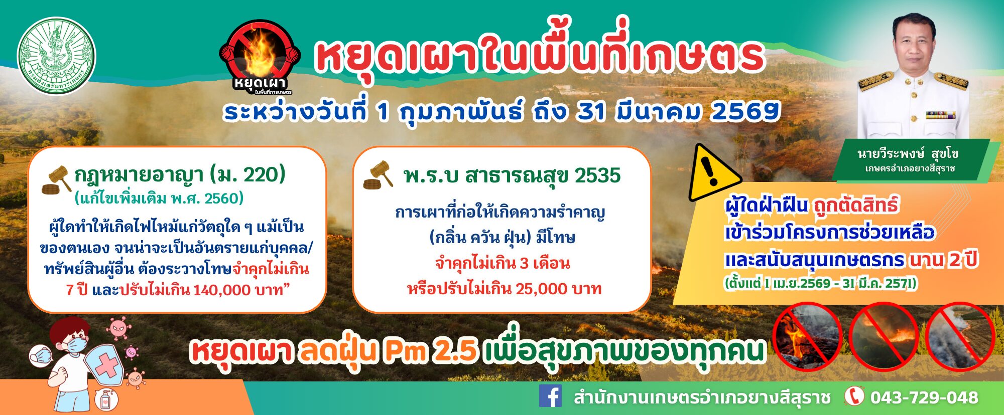 หยุดเผาในพื้นที่เกษตร หยุดสร้างหมอกควัน ลดฝุ่น PM. 2.5 เพื่อสุขภาพของทุกคน